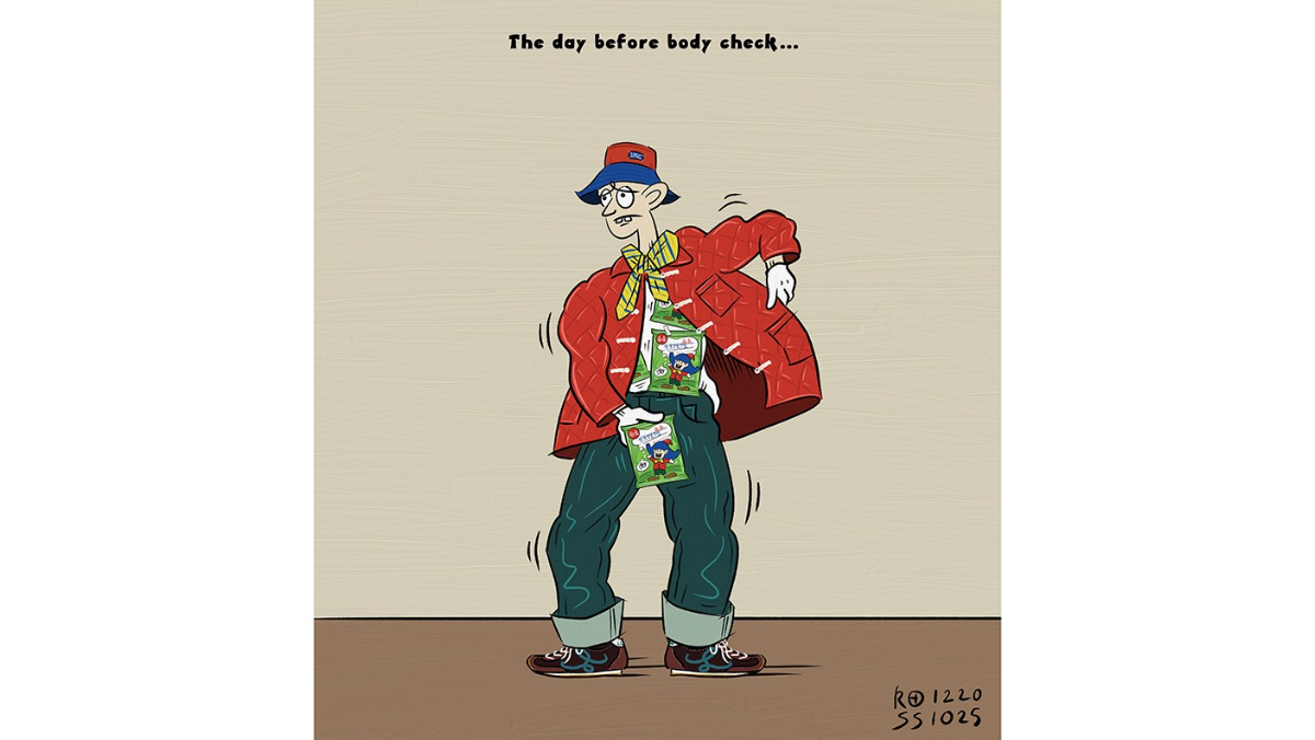 香港插畫師蘇傳善畫展《不對勁日常》,今天(2/16)在台北開幕,展出30多幅生活中大大小小的「不對勁」瞬間,包括2幅台灣限定畫作,一幅以滿身的零食「乖乖」自嘲健康檢查前的焦慮;另一幅「拿鐵」講的是他到台灣時對於國語的誤解。