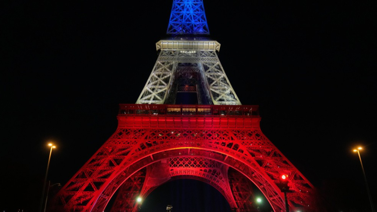 法國13日舉辦巴黎恐攻10週年追思活動,聖母院響起鐘聲,艾菲爾鐵塔打上法國國旗的紅白藍三色燈光。民眾帶著鮮花與蠟燭,悼念當時死於恐攻的受害者。