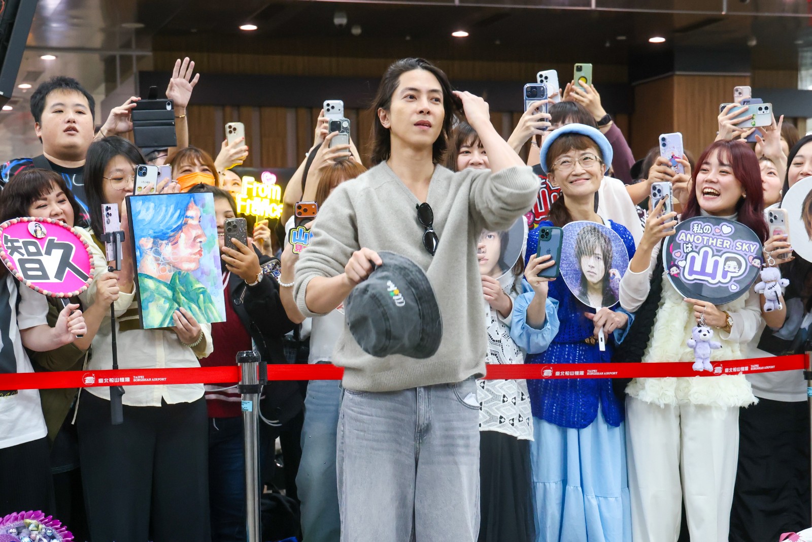 睽違14年將再度來台舉辦專場,山下智久先前表示很期待見到大家,「終於能夠在舞台上,直接向大家傳達我的感謝與心意」。今他自己拉著行李出關,看到滿場粉絲錄出驚喜表情,也不斷揮手致意,還比出讚的手勢。