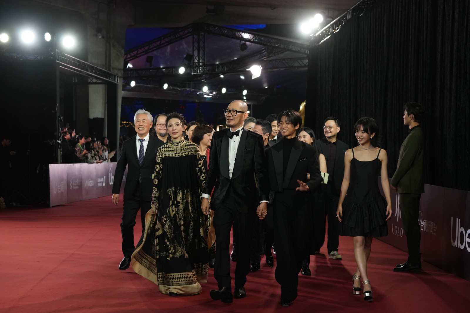 《地母》導演張吉安(中)率劇組成員走紅毯。金馬執委會提供