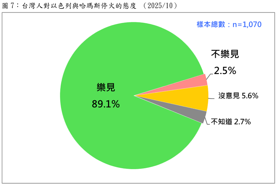 將近9成民眾樂見以色列與哈瑪斯停火。台灣民意基金會提供