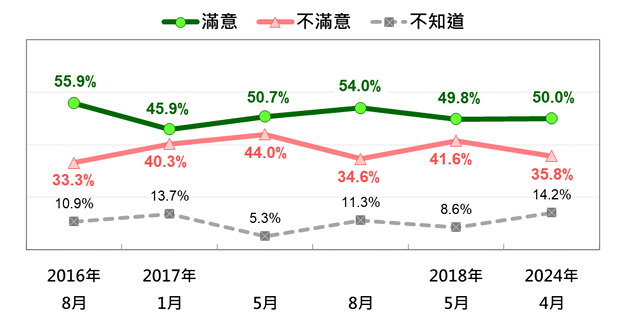 游盈隆表示,軍公教年金改革是蔡英文政府八年執政的代表性政策之一,儘管過程中爭議不斷,不過根據台灣民意基金會長期調查研究,可以清楚看出蔡英文八年任內和軍公教年金改革相關的民意反應趨勢,從2016年到2024年共6次全國性調查,每次調查都發現有多數或過半數人民站在支持蔡英文軍公教年金改革這邊,其中滿意者最高有55.9%,最低也有45.9%;同樣地,不滿意者最高達到44%,最低是33.3%。整體而言,軍公教年金改革曾一路獲得社會主流民意力挺,軌跡相當清楚。