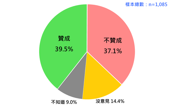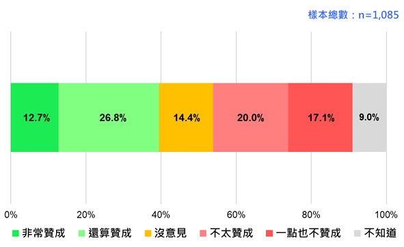 另從政黨支持傾向看,執政黨和在野黨支持者在這項議題的立場南轅北轍,中性選民則略偏向在野立場。值得注意的是,民進黨支持者也有2成6持贊成態度。更具體地說,民進黨支持者2成6贊成、6成不贊成;國民黨支持者5成5贊成、2成1不贊成;民眾黨支持者5成6贊成、2成8不贊成;中性選民3成5贊成、2成8不贊成。