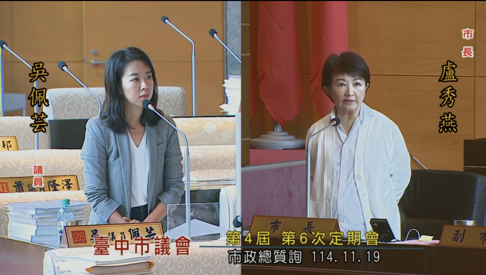 台中市長盧秀燕19日在議會回應新光三越氣爆遭監院要求檢討一事。左:資料照、右:翻攝台中市議會直播