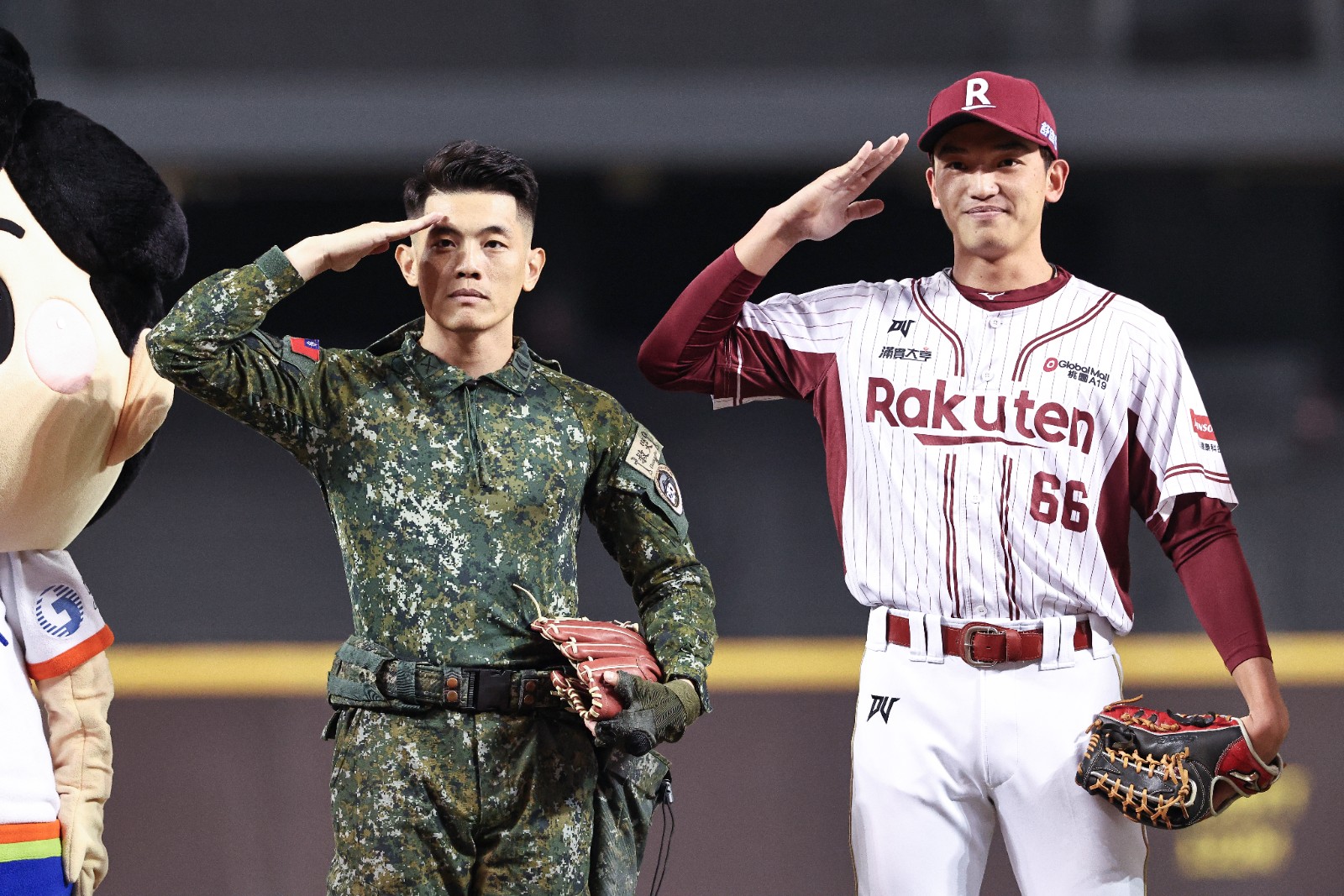 花蓮光復鄉在9月23日因馬太鞍溪堰塞湖溢流導致水災,中華民國國軍第一時間進駐救災,日前也出現一段小女孩向國軍官兵道謝,官兵將帽子贈送給小女孩的暖心畫面,該名弟兄隨即在網路上爆紅,今天特別受到聯盟邀請來到台北大巨蛋為台灣大賽G3開球。