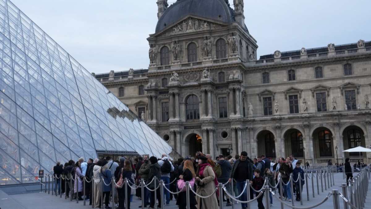 法國巴黎羅浮宮10月19日發生珠寶搶案,連續閉館3天後,10月22日恢復開放,玻璃金字塔入口處湧現排隊人龍。美聯社