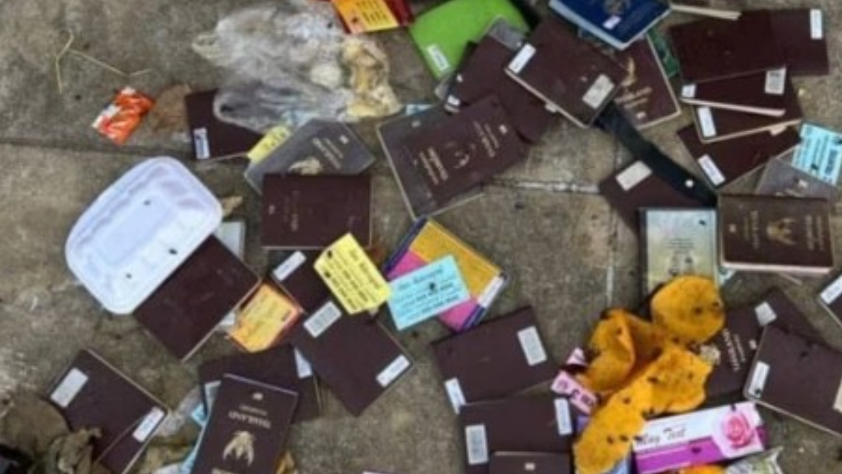 柬埔寨成詐騙基地,路邊甚至可見被丟棄的「護照山」。翻攝自X@best181p