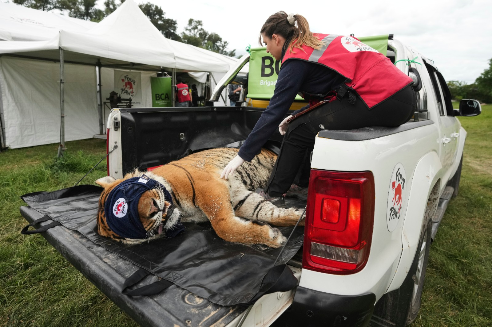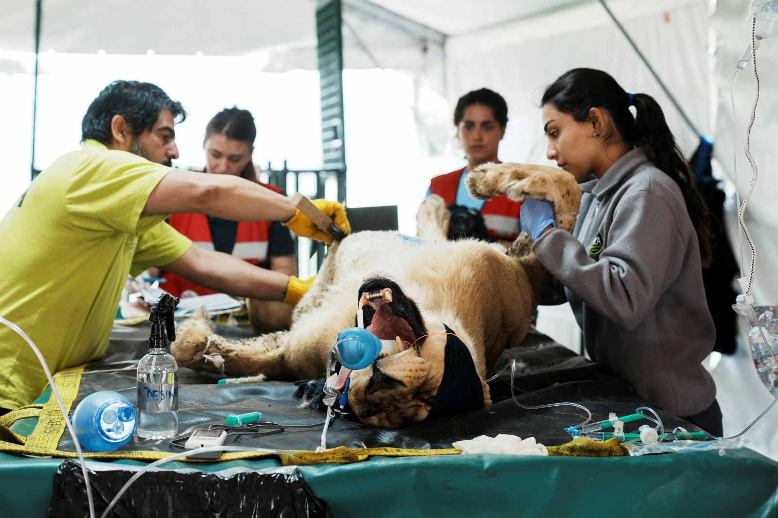 「四爪」今年與阿根廷政府簽定備忘錄,接管了盧漢動物園倖存動物的照顧工作。該組織領導緊急救援任務的獸醫哈利勒(Amir Khalil)10月底帶著團隊為剩下的62隻獅子、老虎和2頭棕熊,進行5年來第一次醫檢與評估。