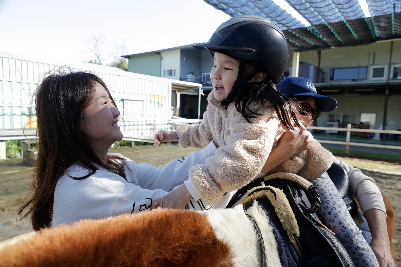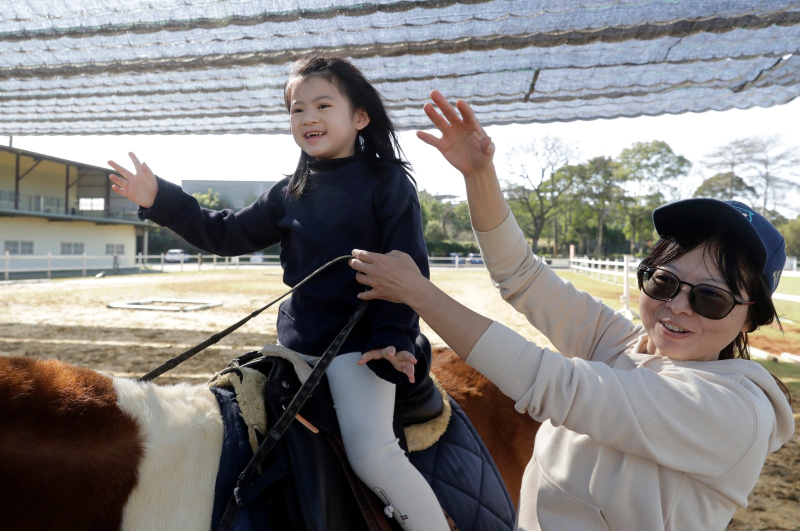 5歲的Ayah罹患會導致發展遲緩的罕病天使症候群(Angelman Syndrome,AS,又稱快樂木偶症),Ayah的媽媽接受美聯社訪問時也說,馬術治療讓女兒獲益匪淺:「騎馬之後她開始不那麼害怕未知事物,更願意嘗試新事物。」