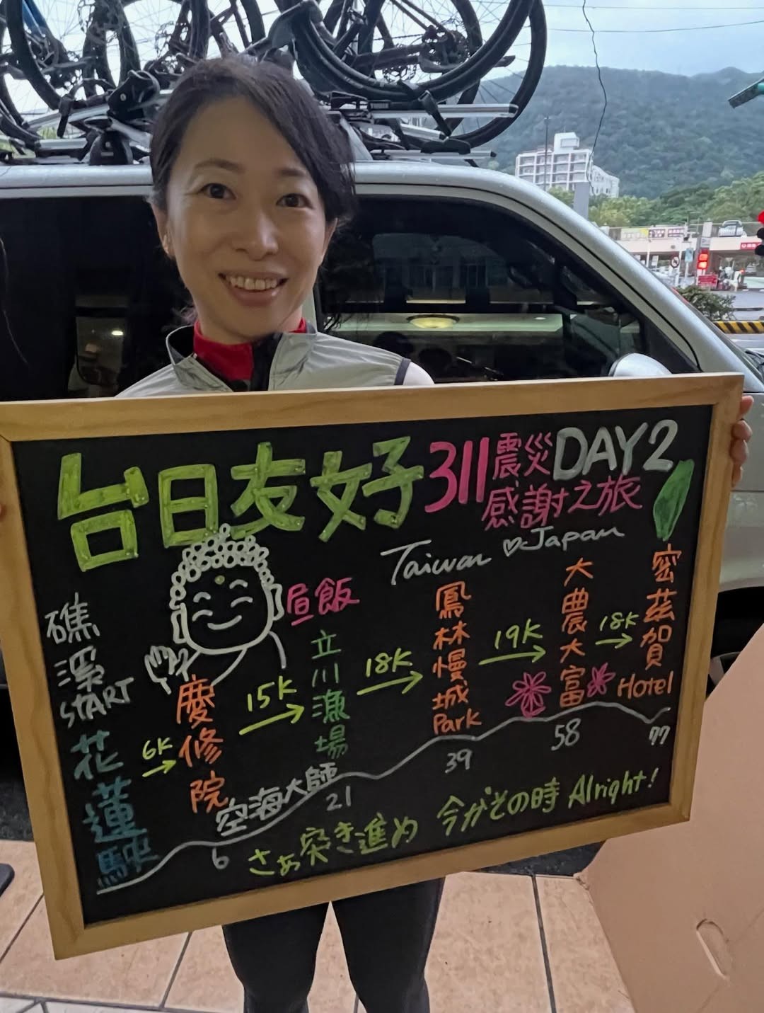 日本作家一青妙等人號召單車環島,除了表示對台灣在311地震時支持日本的謝意,也盼望透過與在地居民交流傳遞情感,希望吸引日本人來台旅遊。翻攝一青妙IG