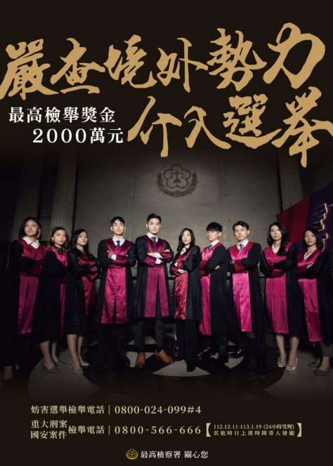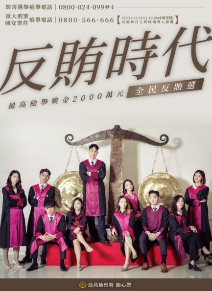 最高檢2023年曾邀10名新世代檢察官拍攝反賄選宣傳。新北檢的粘鑫(中)也在其中。最高檢提供