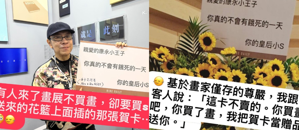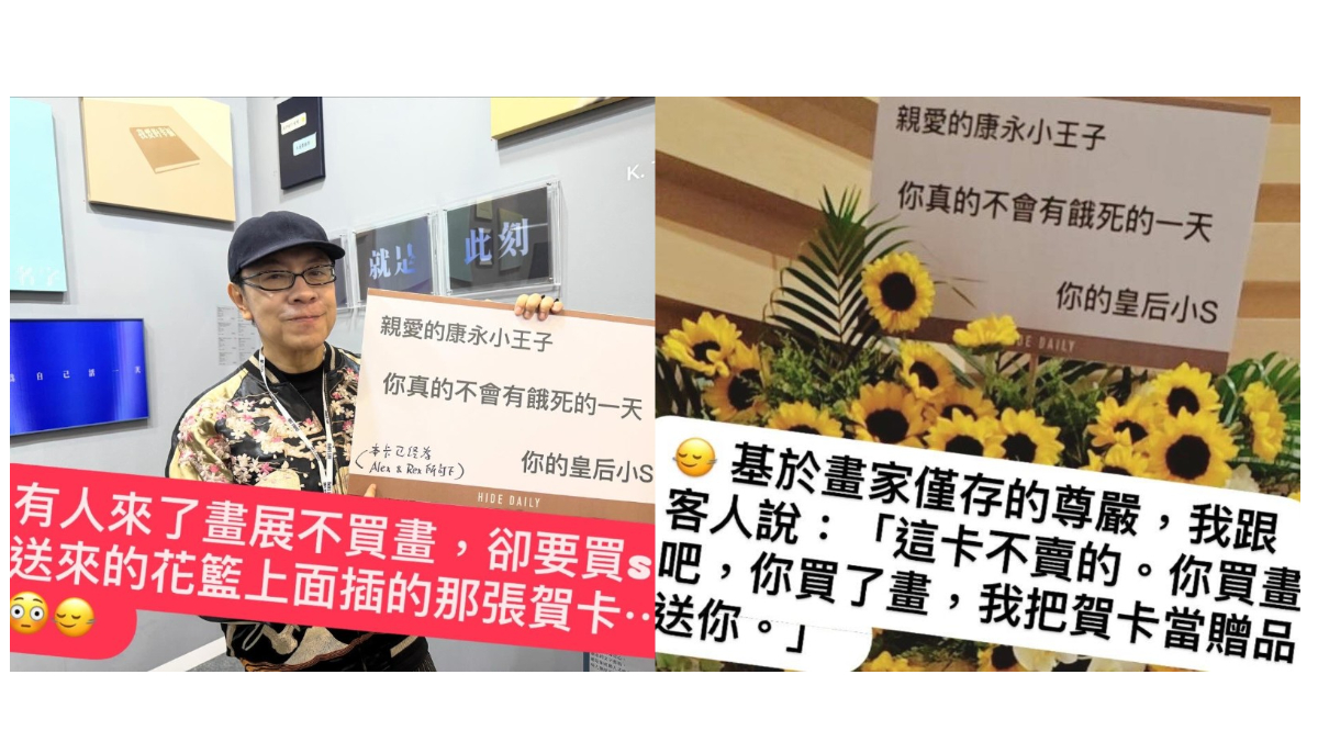 藝人小S自從姐姐大S年初病逝後就停工至今,直到近日現身金鐘獎與昔日搭檔蔡康永合體,掀起外界矚目。近日蔡康永舉辦個人畫展,他在社群上曬出小S送來的巨型花籃賀卡,透露居然有現場客人向他開口要求想買這張卡片,忍不住自嘲,「這業績應該算是小S達成的吧!」