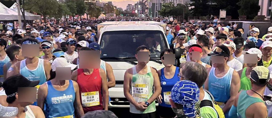新竹市城市馬拉松昨(16日)清晨登場,起跑前3分鐘竟出現一台白色小貨車駛進起跑區,在距離起跑線僅20公尺處被攔下,前方則是滿滿的跑者,稍有不慎即可能釀成意外,事發後不少跑友在社群發文抱怨,直呼「真的太離譜!」、「跑過這麼多場馬從沒遇過這種事」。