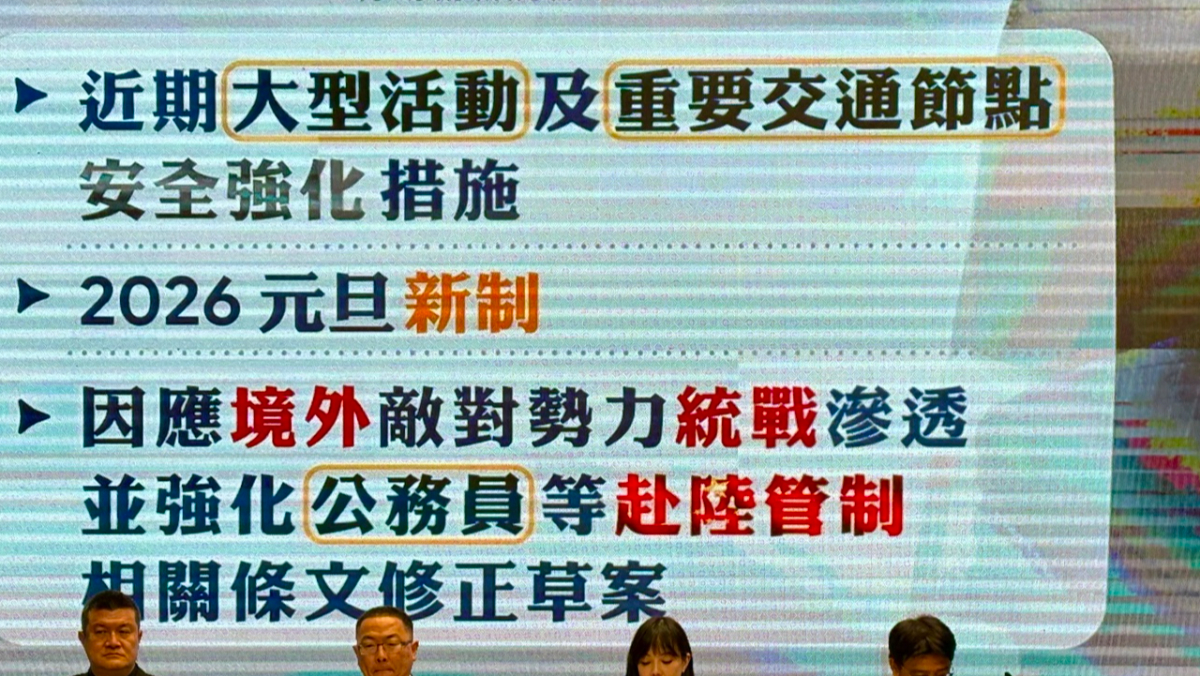 行政院提案修改兩岸人民關係條例,要求未來立委赴陸須經許可,所有公務員赴陸也都納入管制。立法院國民黨團中午批評,面對兩岸交流與競爭,賴政府連讓公務員去中國大陸看看的勇氣都没有,這是台灣人民的不幸。