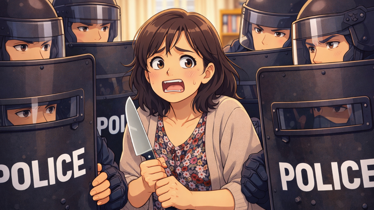 北捷台北車站、中山站商圈本月19日才發生隨機攻擊案,今天(12/31)適逢跨年夜,全台警方高度戒備。不料,台中楊姓婦人上午11時許欲前往台中地院的郵局領錢,通過X光機時警方發現她包包中藏了一把菜刀,當場攔下,楊婦情緒失控,與法警大吵,驚動轄區警方10多人持盾牌到現場,將人帶回調查。