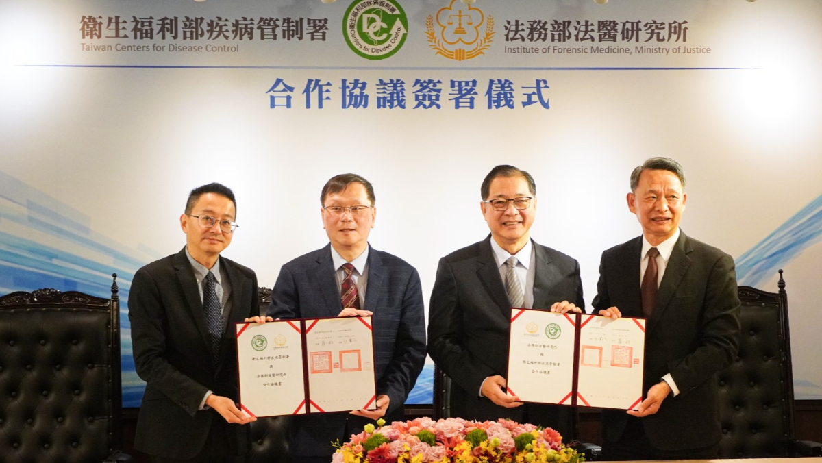 為提升國家防疫體系與司法科學鑑識能量,法務部法醫研究所(以下簡稱法醫所)與衛生福利部疾病管制署(以下簡稱疾管署)於今(2/10)日上午10時,在法務部文史陳列館舉行合作協議書簽署儀式。未來,雙方將針對「疑似傳染病致死」及「疑似預防接種疫苗致死」案件建立快速通報與檢驗機制,進一步強化公共衛生監測網絡,共同打造更具韌性的社會安全網。