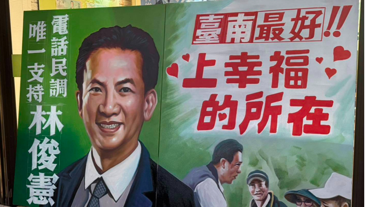 民進黨立委林俊憲近日找來被譽為「臺灣國寶」的手繪電影海報大師顏振發,為他繪製一幅獨具臺灣在地情感與傳統工藝精神的競選看板,並喊出「唯一支持」的口號。林俊憲說,希望用這種最有人情味、最能代表台南精神的方式來爭取市民認同,也呼籲市民在接到民調電話時,堅定表態「唯一支持林俊憲」。