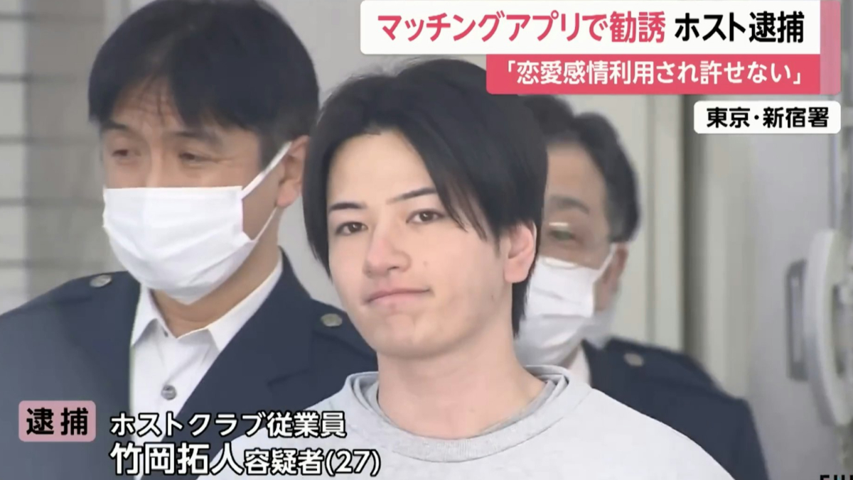 日本東京歌舞伎町一名27歲男公關「艾倫」,涉嫌透過交友APP偽裝成從事IT產業的上班族,與多名女性建立關係後,再誘導對方前往其任職的牛郎店消費,甚至以「投資兩人未來」為由,要求對方提領積蓄或借貸金錢。他在1月底將其逮捕,並依違反《風俗營業法》偵辦,成為日本首例利用交友軟體進行風俗非法攬客的案件。