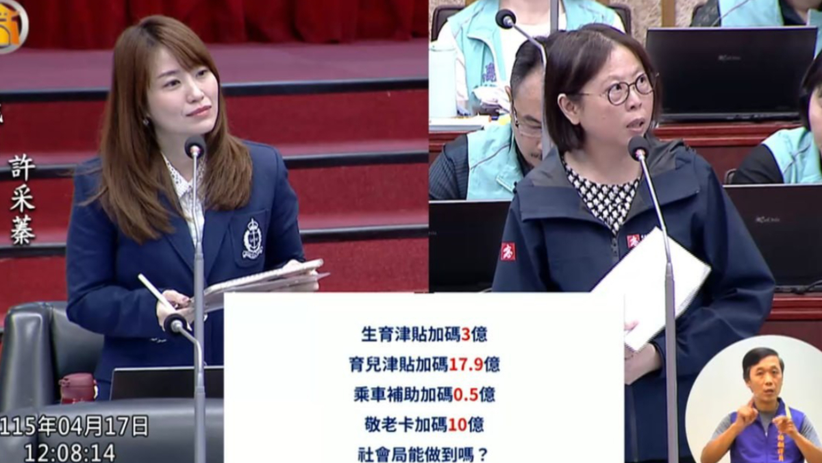 高市議員許采蓁今(4/20)在議會質詢表示,高雄目前負債達2243億元、年利息逾30億元,財政壓力沉重,並點名民進黨市長參選人賴瑞隆提出社福加碼政見,恐使市府每年新增逾31億元支出,占社會局預算逾一成,使兒少福利經費膨脹至1.5倍,直呼是「大灑幣」,更痛批為純屬欺騙選民的誇大政見,恐導致財政失衡。