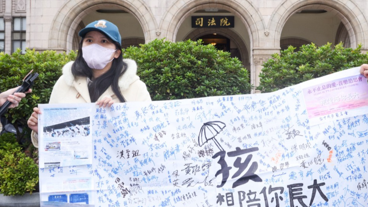 新北割頸案近日二審宣判,涉案郭姓少年、林姓少女分別加重改判12年、11年徒刑。被害人家屬發聲明痛批,曾有1名法官說要「讓凶手來孝順我們」。「孩想陪你長大聯盟」總召徐妮妮今(12/26)日到司法院外聲援楊父、楊母,痛斥法官羞辱家屬,擺出祭壇祭拜「已死的司法」,同時呼籲盡速修正《少年事件處理法》,取消「少年犯重刑前科塗銷制度」,改善家庭輔導。