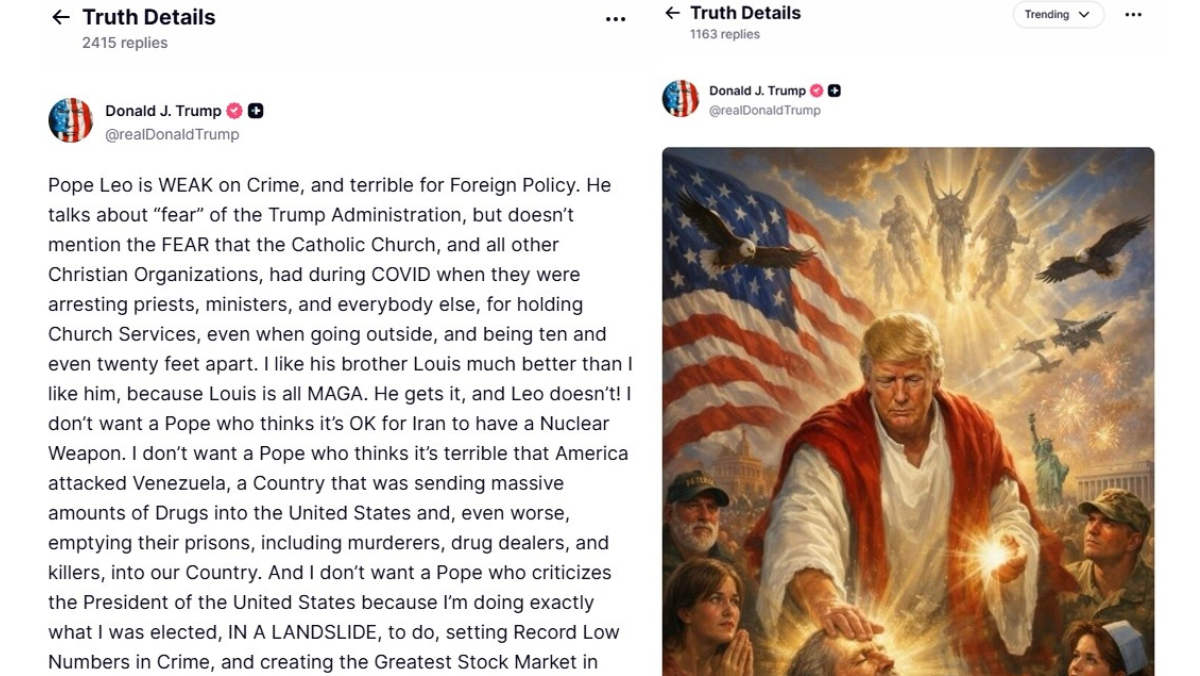美國聯手以色列對伊朗發動戰爭以來,羅馬天主教教宗良十四世多次不點名批判發動戰爭的美國政府。美國總統川普週日(4/12)在社群媒體發出長文痛批良十四世「軟弱」,稱他是「左派份子」,還說若不是他當選總統,梵蒂岡不可能選出美國籍的教宗。