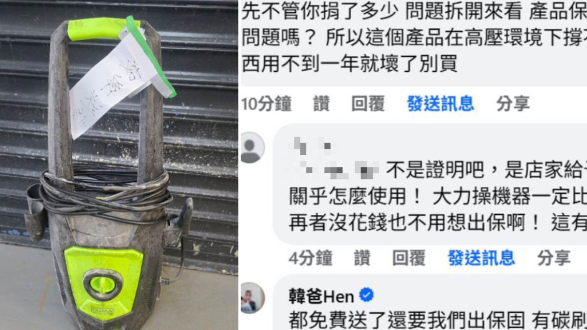 去年記憶猶新的馬太鞍溪堰塞湖的洪災,讓花蓮光復鄉周圍被滾滾泥流淹沒,不少居民家園都遭層層泥沙掩蓋,除了許多民眾自主前往花蓮救災,更有不少業者捐贈物資助災民重建家園。其中,一名代理商送了「高壓洗車機」幫助災民清淤泥,近日卻有洗車機壞了,民眾竟要求業者提供保固,業者拒絕更怒轟「都免錢了還要好要滿」,引發網路熱議。