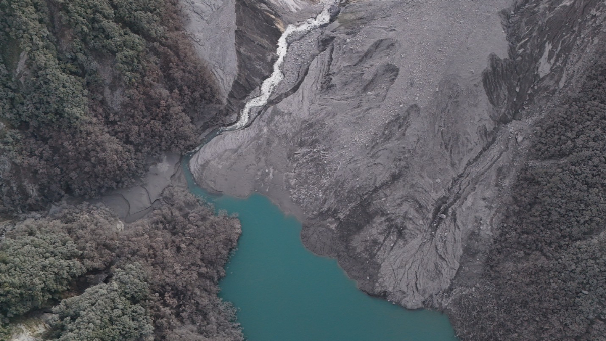 宛如末日災難!花蓮馬太鞍溪堰塞湖溢流後,下游忙著救災,農業部林業保育署花蓮分署日前組成一支9人專業團隊勘查上山路線,預計11天徒步來回。歷經崎嶇險峻地形5天,昨(4日)下午終於抵達堰塞湖,只見煙塵茫茫,眼睛容易進沙、呼吸困難,在艱難的情況下完成任務,已準備下山。
