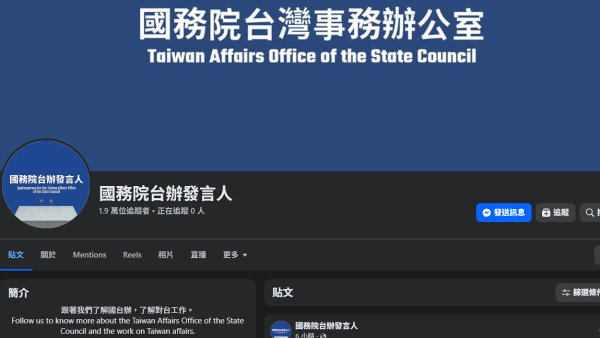 國台辦近期動作頻頻,先是宣布增加記者會頻率,改為每週一次,中共國台辦發言人昨(10/22)日起開設粉專,至今已經有超過1.7萬人追蹤。媒體詢問「陸委會」是否與「國台辦」在網路世界交流接觸,陸委會副主委兼發言人梁文傑則表示,並不會到對方粉絲專頁留言。