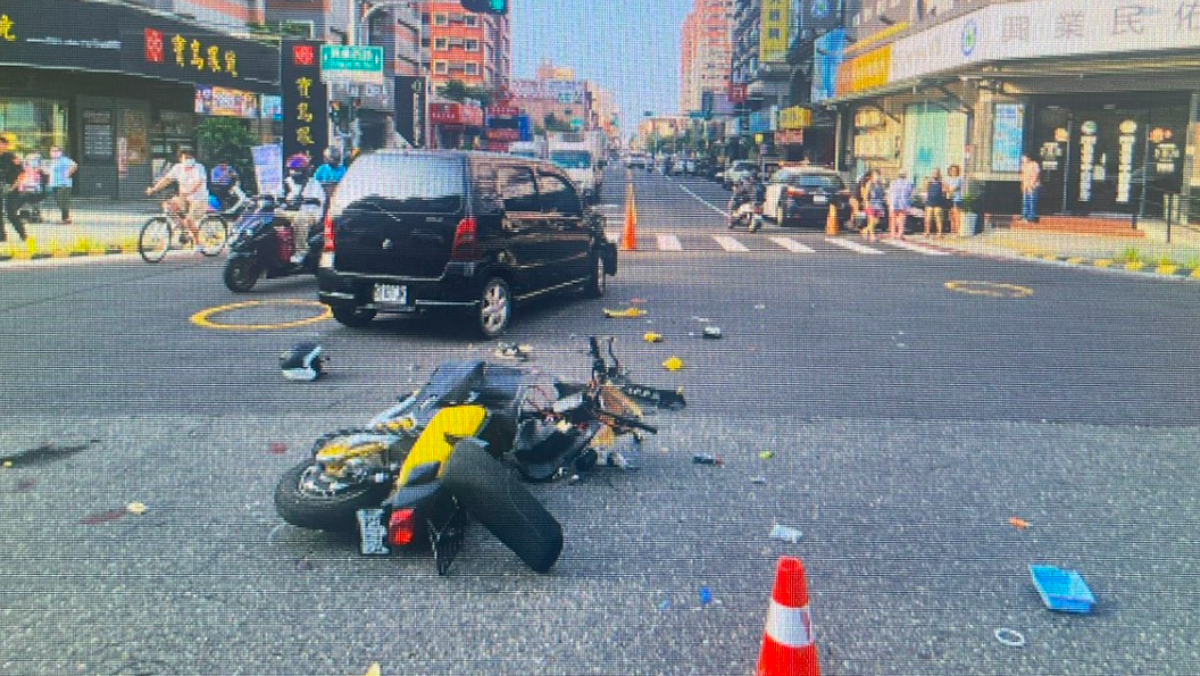 嘉義市發生微型電動二輪車、轎車撞擊交通事故,騎微電車的16歲少年,慘叫一聲後失去意識,送醫不治。少年的微電車慘烈對折,警方介入釐清肇責。