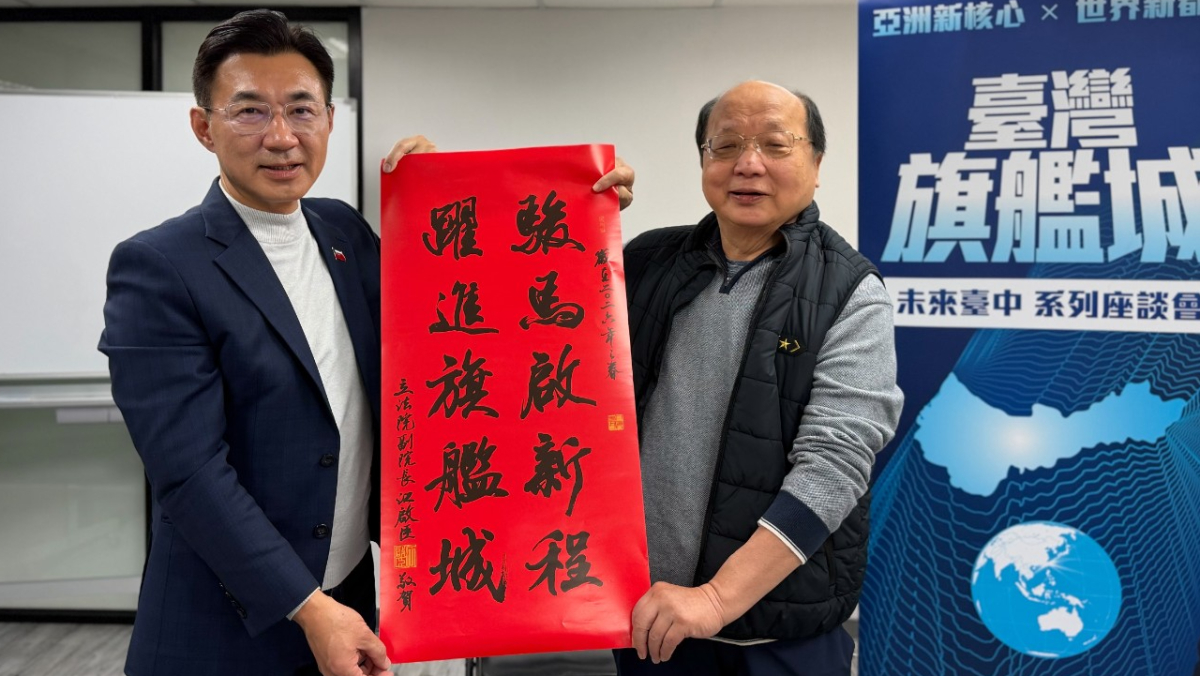 爭取國民黨提名參選台中市長的立法院副院長江啟臣,今與台中前市長胡志強、前台中縣副縣長張壯熙暢談台中未來。會中,胡鼓勵江發揮涉外能力,展現「國際水準」,在現有幸福城市基礎上,讓「台中迎來最好的時代」。