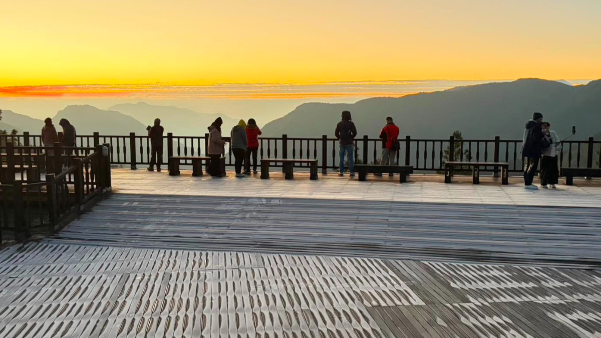 冬季限定!受輻射冷卻影響,今(12/16)日清晨各地早晚天氣偏冷,西半部日夜溫差明顯。位於海拔約2000公尺的宜蘭縣太平山國家森林遊樂區,清晨最低溫只有攝氏4度,太平山莊前方的木棧平台出現結霜現象,鋪上一層銀白霜晶,在晨光映照下宛如撒上糖霜,美景吸引不少遊客駐足拍照。