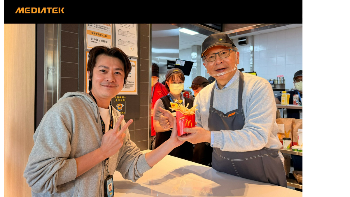 不僅新竹台積電餐廳有麥當勞,聯發科員工餐廳麥當勞今年正式進駐!聯發科執行長蔡力行今天現身員工餐廳現炸薯條給員工,為員工獻上熱騰騰的祝福!有網友笑稱,看到發哥回歸麥當勞Logo本業,不忘初心,真是感動!