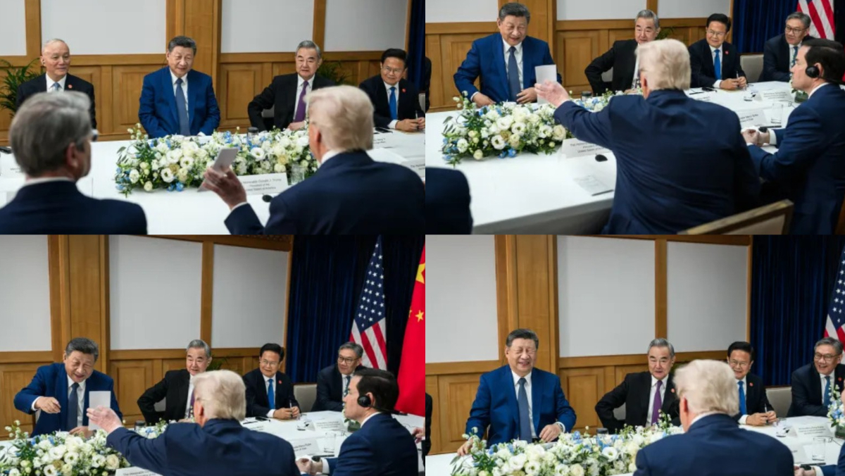 美國總統川普與中國國家主席習近平,10月30日在南韓釜山舉行「川習會」,全球紛紛解讀這場會談有談及沒談的議題與意義。白宮上傳會議照片,其中數張顯示川普向習近平展示一張卡片,習近平罕見露出笑得非常開心的表情。前白宮國安會中國事務主任偉德寧(Dennis Wilder)認為,川普展示的應該是幕僚製作的會談重點提示卡。