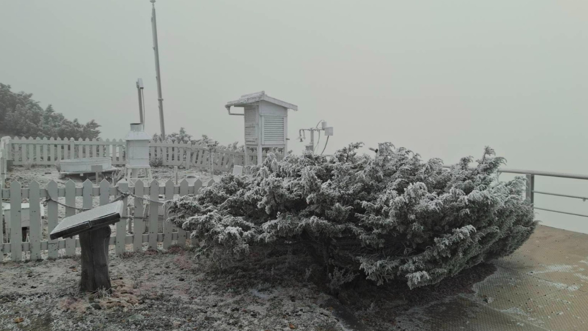 大陸冷氣團發威,氣象署表示,玉山北峰今天(12/26)早上06:28至06:38降雪,未完全覆蓋地面,無雪深。氣象署資料顯示,今日全台最低溫為玉山風口測站零下5.5度,其次為玉山測站零下4.7度。