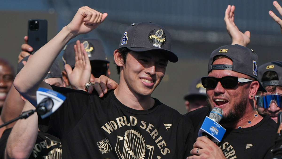道奇隊今天舉行冠軍遊行,球迷難得有機會聆聽球員分享爭冠歷程,其中受到矚目的道奇王牌投手山本由伸(Yoshinobu Yamamoto),他在致詞中,以英文喊出金句「輸球不是選項」(losing is not an option)引發熱烈迴響。