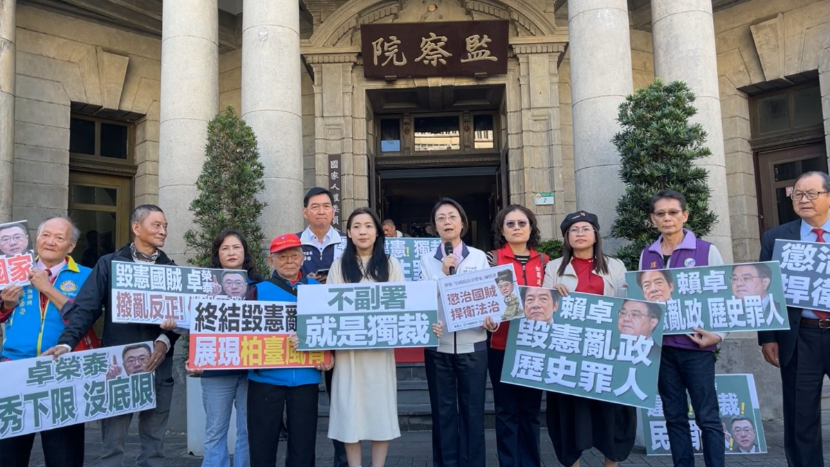 部分國民黨、民眾黨立委今(23日)赴監察院召開「懲治國賊、捍衛憲政─正式向監察院提出彈劾行政院長卓榮泰」記者會,遞交彈劾卓榮泰陳情書,呼籲監委調查卓揆在覆議遭否決後拒不副署,致法律無法完成公布或實施,已逾越行政權限,構成重大違法失職。