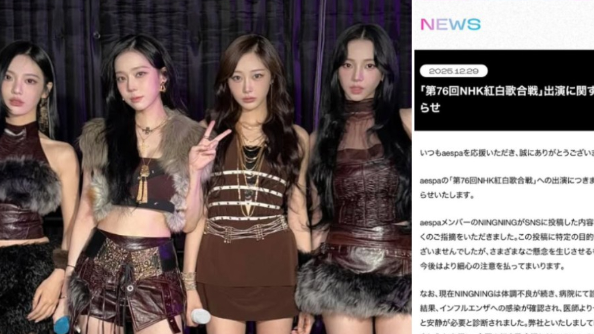 再過兩天就是跨年夜,許多歌迷都期待日本第76屆NHK紅白歌合戰的表演,韓國女團aespa受邀出席以來,又碰上中日關係緊張,中國籍成員寧寧以往言論也成為討論焦點,aespa今天在日文版官方網站宣布,中國籍成員寧寧因為「感染流感」,將缺席紅白,因此12月31日的晚會aespa只有三位成員登台。