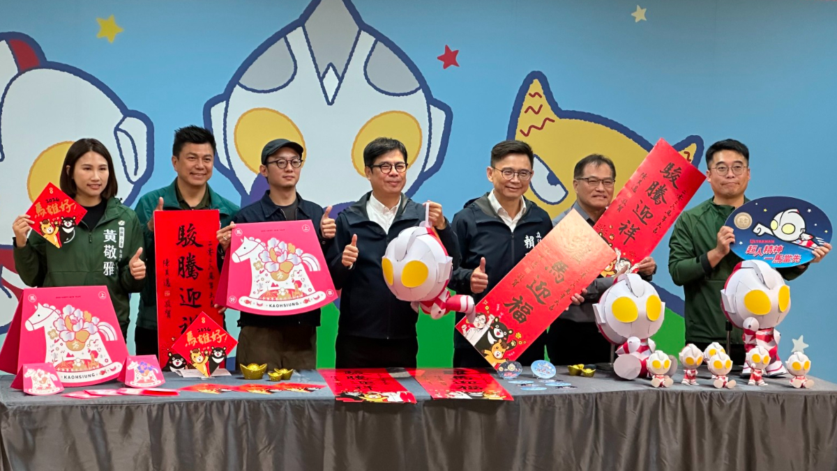 迎接馬年的到來,高雄市長陳其邁今天(1/20)搶先公開「丙午年限定新春小物」,其中最受矚目的是結合「高雄冬日遊樂園」主題IP——「超人力霸王」的小提燈。高雄市的國小及幼兒園學童將於開學周由學校統一發放,一般民眾則可於 2 月 27 日、28 日到高雄港 18 號碼頭領取,每人限領2盞,數量有限,送完為止。