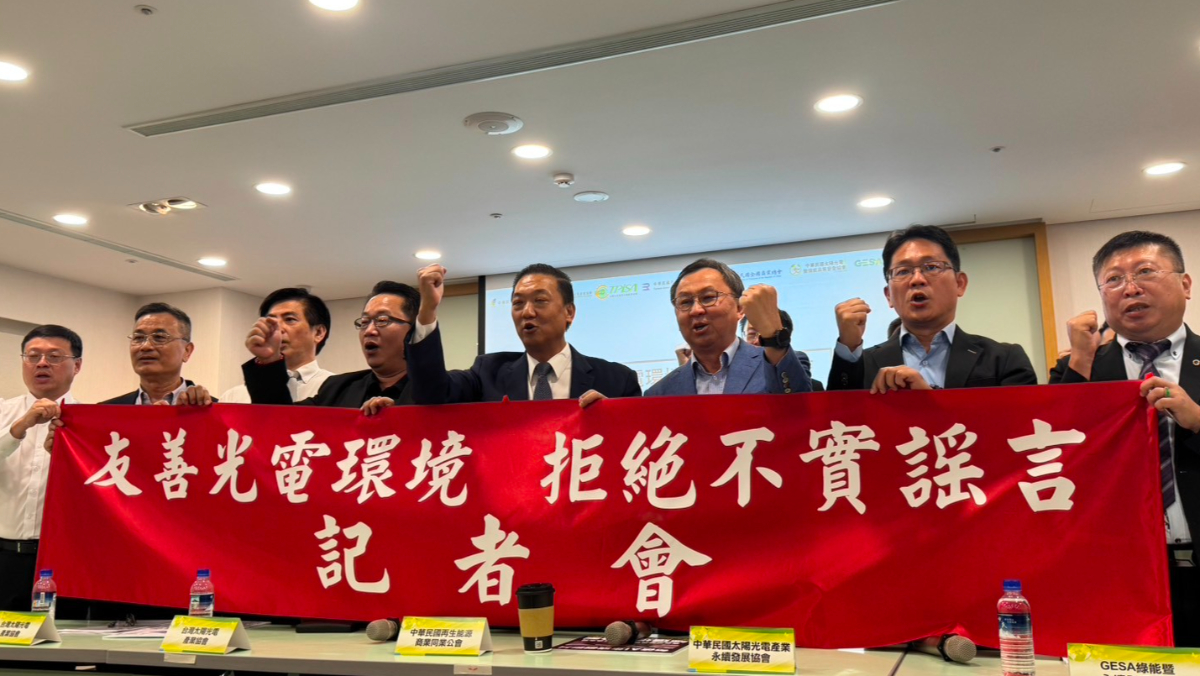 七大光電產業公協會今(14)日罕見共聚一堂,召開記者會表示,拒絕光電不實謠言,光電只用清水清洗,光電模組無毒且安全無虞。在烏山頭水庫架設光電的星能副總徐德聖則坦言,昨天提告對象只有北市聯醫醫師蘇一峰,未對媒體提告。