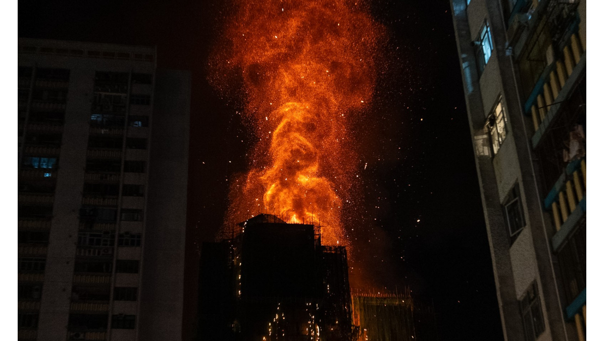 香港大埔的一處集合高層住宅週三(26日)下午發生火警後,演變成全社區8棟超高大樓同時燃燒的慘烈大火,截至週三晚間已有至少13人喪生。火勢入夜後毫無減緩跡象燒得更猛,火焰沖天猶如火山爆發。
