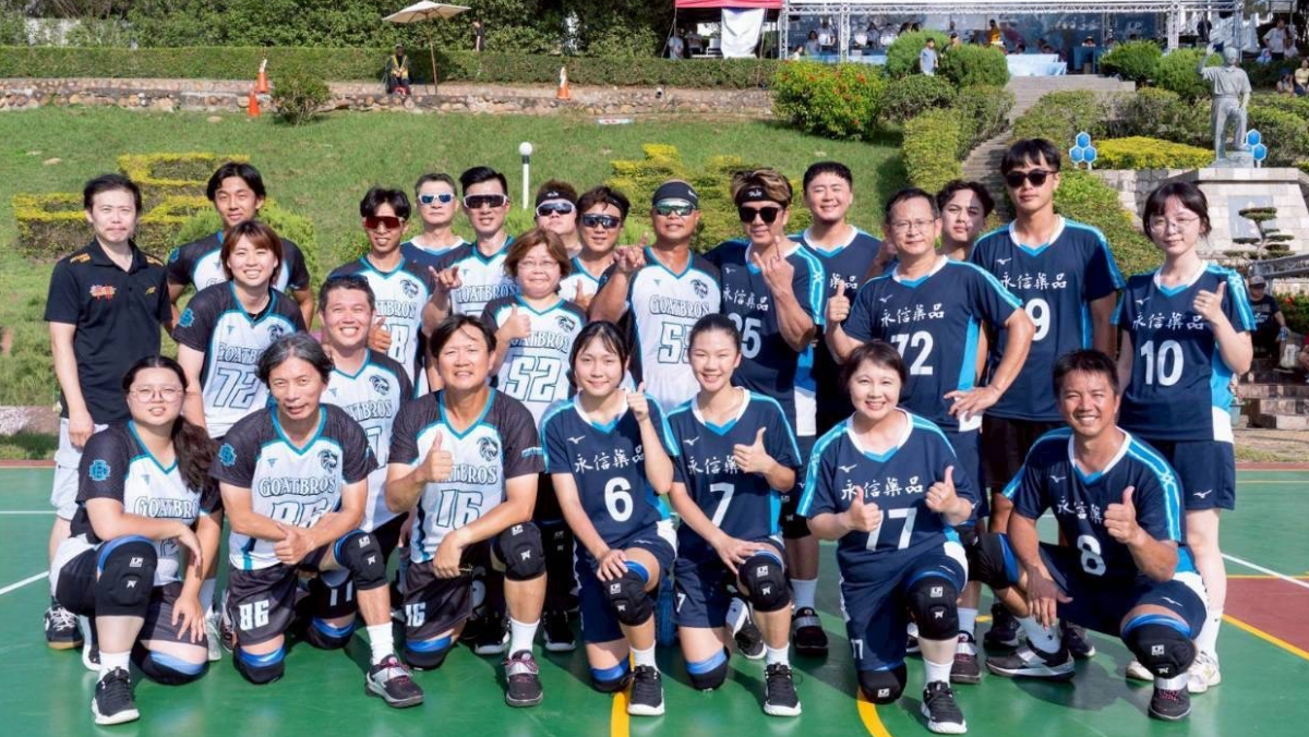 日前舉行的第52屆「永信杯」全國排球錦標賽盛會中,「山羊兄弟」隊強勢登場,展現一個多月來的備戰成果。比賽由退役職棒好手陳冠任、吳俊億、蘇建榮領軍,率領全隊迎戰永信藥品,為賽事掀起高潮。