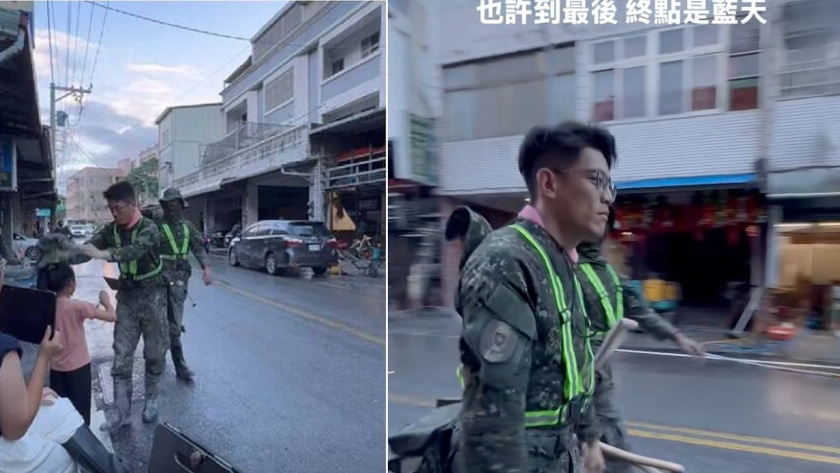 花蓮馬太鞍溪堰塞湖溢流重創光復鄉,直到14日重建家園任務仍持續,國軍默默付出。一段影片超暖的影片在網路上流傳,國軍成群結隊經過街道,災民、志工站在一旁致意,一名小女孩興奮與國軍擊掌,一名軍人將自己的迷彩漁夫帽戴在小女孩頭上,而軍人愛妻看到影片後也認出自己老公,直言還是這麼帥的。