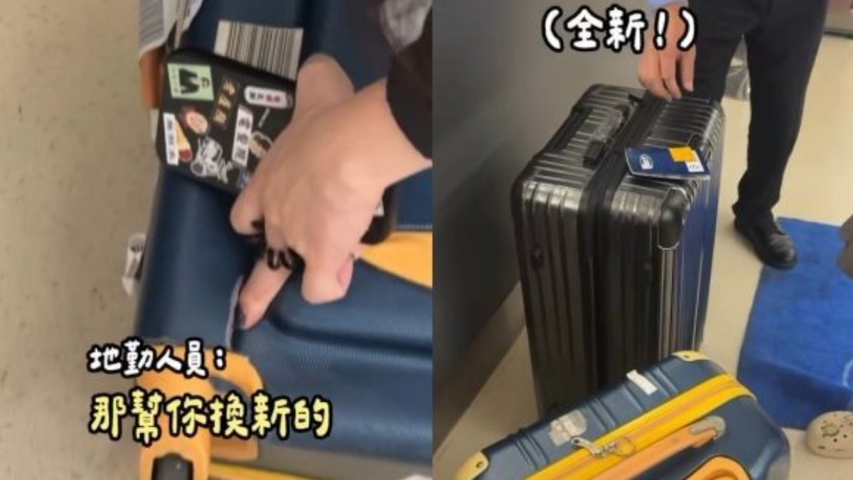 網紅「一隻阿圓」日前和夥伴阿簡在機場領取行李時,發現阿簡的行李箱被摔破一個洞,沒想到向航空公司反映後,地勤人員過幾分鐘竟直接換上一個新的行李箱,讓他們超驚訝,直呼「中華航空現在是我爸」,文章曝光後,不少網友紛紛留言表示有過類似經驗,還有網友大讚「拿過華航賠的行李箱,品質真的挺不錯」。
