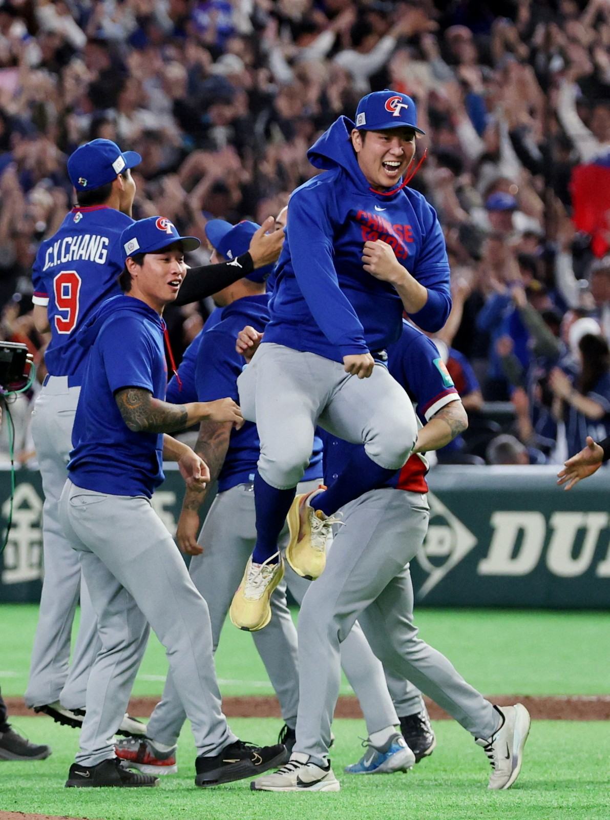 台灣隊今日在預賽最後一場對上韓國,在這場絕對不能輸的比賽,台灣面對過去在經典賽從未贏過的老對手,最終在延長賽靠著台灣隊長陳傑憲奮力拚戰帶動,拿下重要一勝,全隊在拿下最後一個出局數瞬間情緒潰堤,包括先發投手古林睿煬、敲出全壘打的張育成、後援投手孫易磊,還有今日未出賽的沙子宸全都哭成一團,在場上激動落淚。