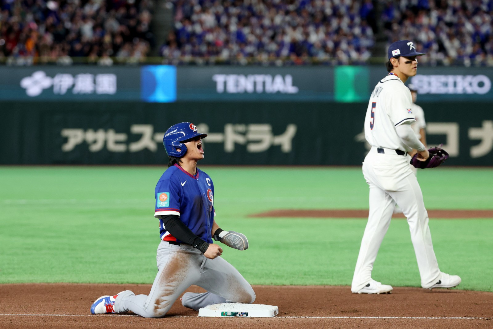 被追平的台灣隊下個半局馬上還以顏色,鄭宗哲一發中左外野方向的全壘打再度要回領先,不過六局下半狀況極佳的金倒永一發兩分砲,幫助韓國隊反超台灣,在比賽中首度取得領先優勢。不過8局上半台灣隊攻勢再起,費爾柴德(Stuart Fairchild)逮中一顆外角滑球,一棒掃出右外野全壘打牆,再度幫助台灣隊取得領先,不過下個半局韓國隊再次展現韌性,孫易磊保送金慧成後,金倒永擊出長打將金慧成送回本壘,再度追平比分。