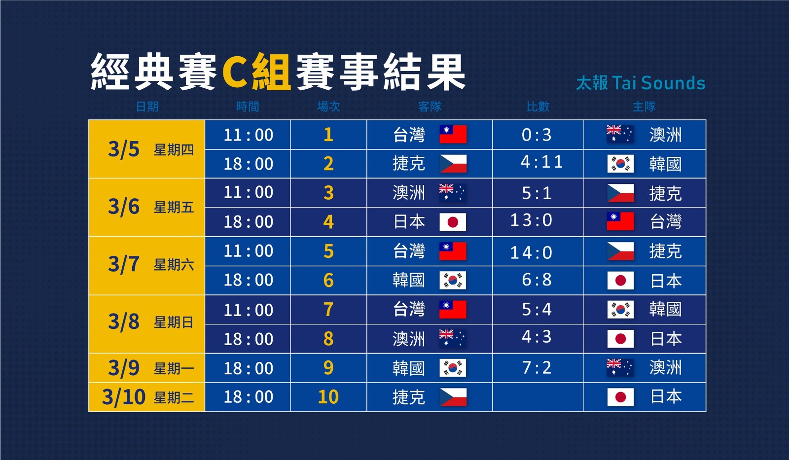 3/9經典賽C組賽事結果。太報製圖