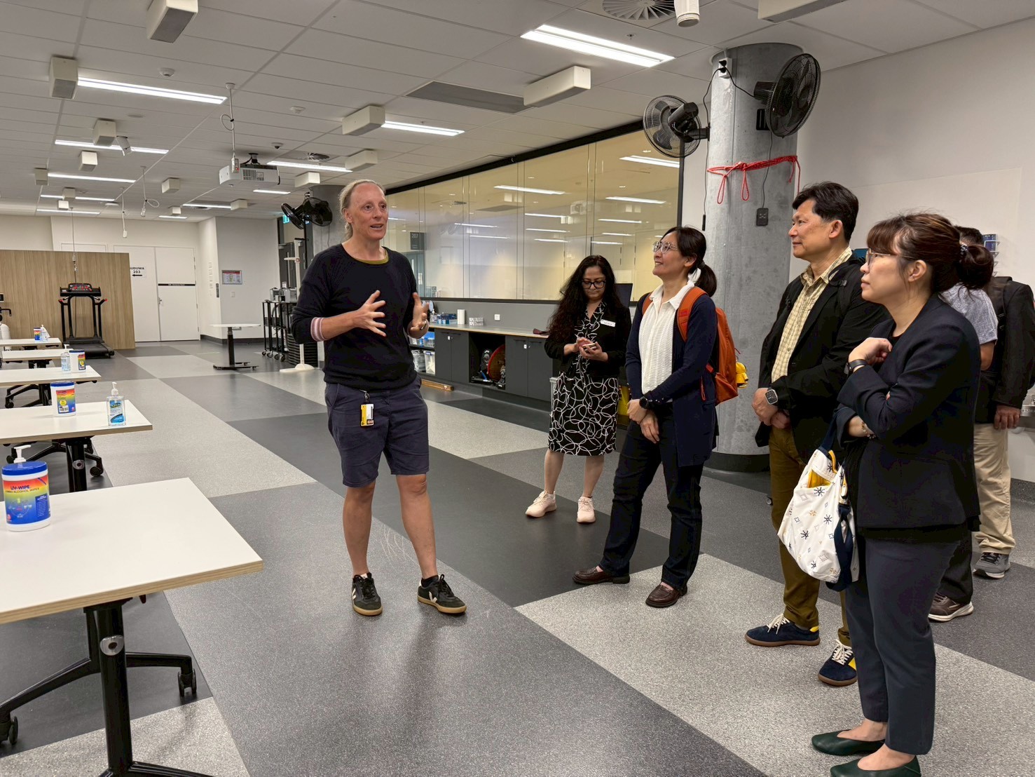 嘉大參訪團首站鎖定南半球學術重鎮,許雅雯主任指出,雪梨大學已將運動科學研究與競技訓練「無縫接軌」,透過運動生物力學、生理監控及大數據分析,為運動員提供全方位的科學化支援。