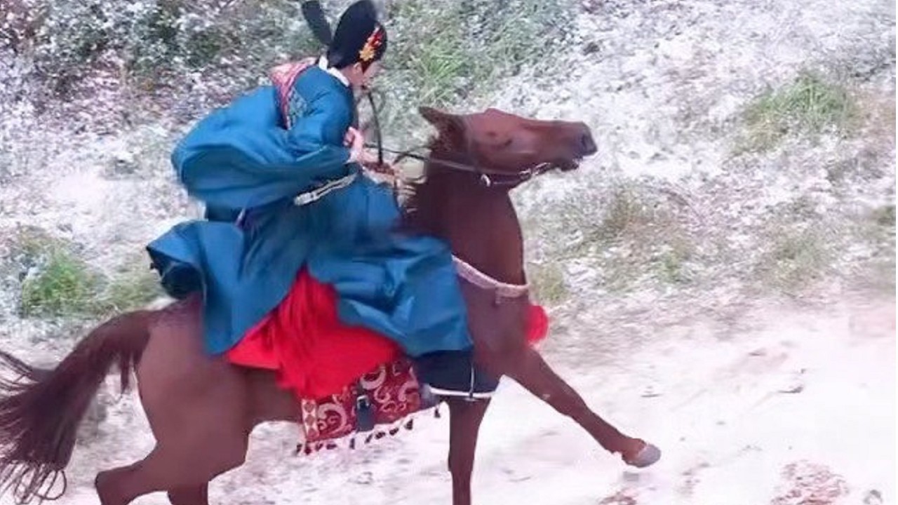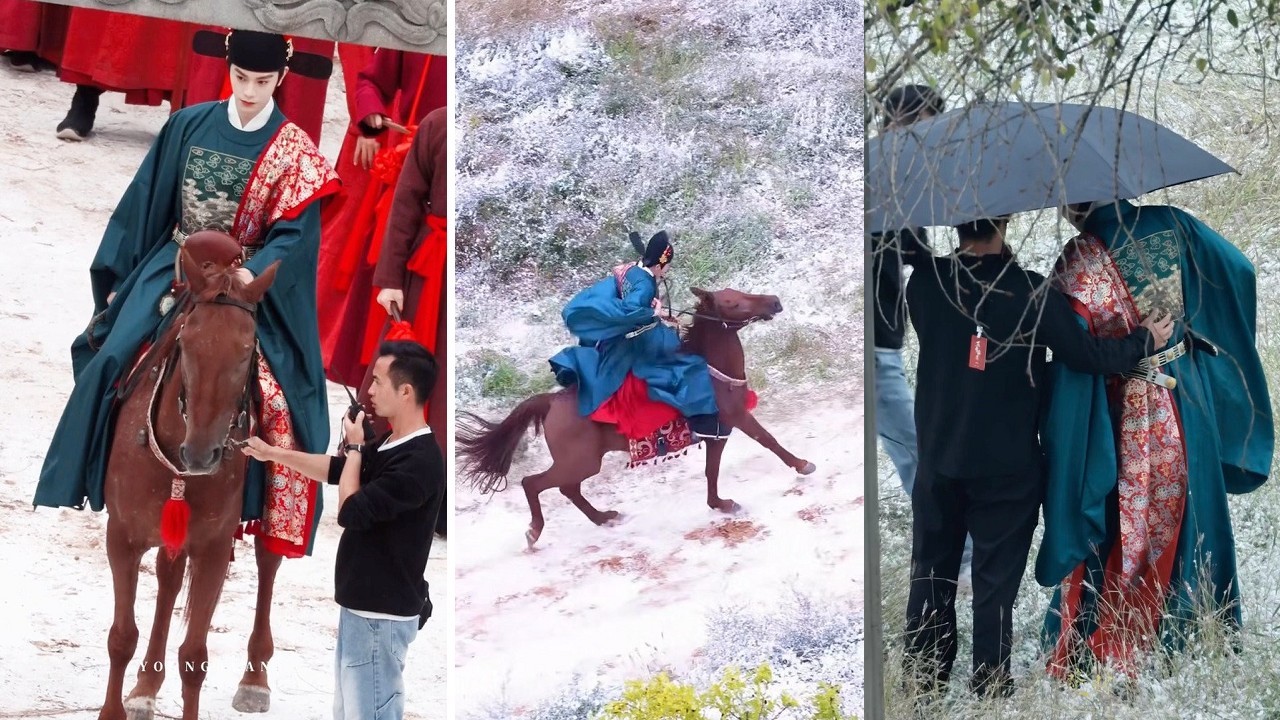 中國一線男星丁禹兮在片場拍新劇,馬匹突然失控暴衝。取自微博