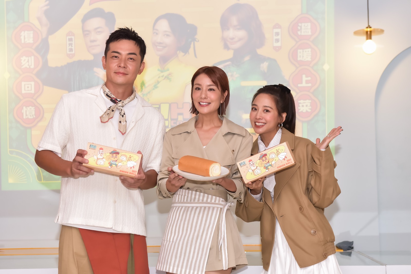 姚元浩(左起)、莎莎、鬼鬼介紹節目將推出的「嗨!生乳捲」。好看娛樂提供