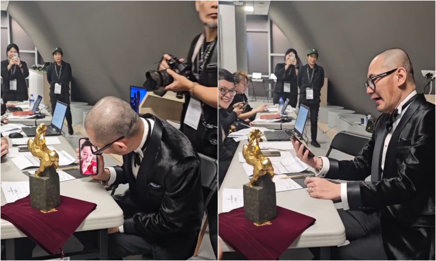 《地母》昨日囊獲最佳女主角、最佳攝影、最佳原創電影歌曲,范冰冰因故未能來台,由張吉安代為領獎,而金馬執委會稍晚在Threads公開後台影片,范冰冰與張吉安在慶功宴上視訊,她哭得梨花帶淚,情緒很激動,張吉安為了逗她笑,特地把視訊鏡頭轉向最佳女主角獎座,笑著對她說,「我幫妳領回啊,我們等一下再說,拍一張給妳看,要不要來看妳名字有沒有寫錯,第62屆金馬獎最佳女主角范冰冰,是妳的名字沒錯吧,沒錯就簽收了。」